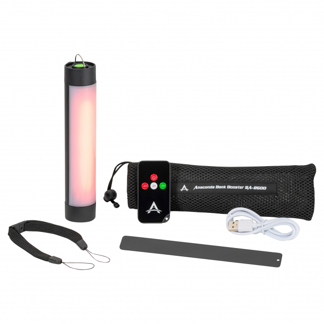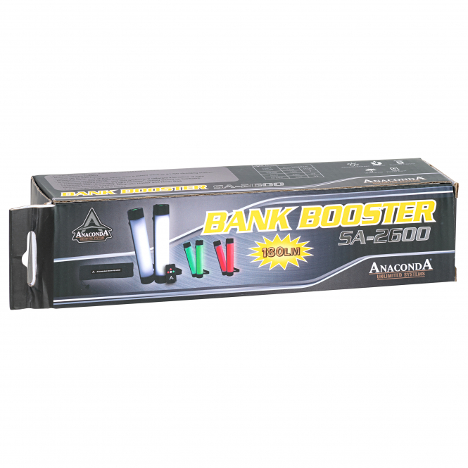 The Bank Booster is a flexible and powerful lamp and USB power bank at the same time. A total of 3 colors (white, red and green) in 2 different light intensities (strong / weak) can be selected. Includes remote control with 6 meters range.