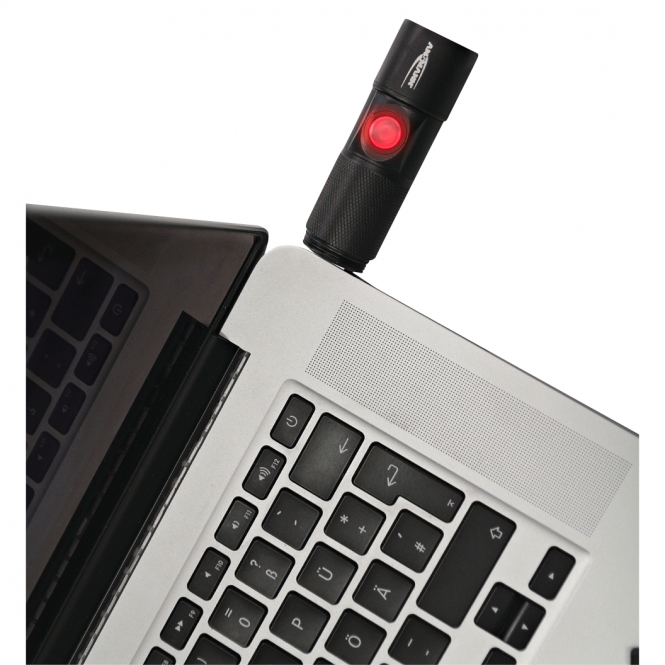Eine Taschenlampe mit einem fest verbauten Li-lon Akkupack. Per USB-Anschluss aufladbar. Leuchtstärke: 300 lm, Leuchtdauer bis zu: 5,5 Std., Leuchtweite: 110 m, Gewicht: 93 g, Inkl. Handschlaufe. Länge: 9,4 cm, Durchmesser: 2,7 cm. 3 Jahre Garantie.