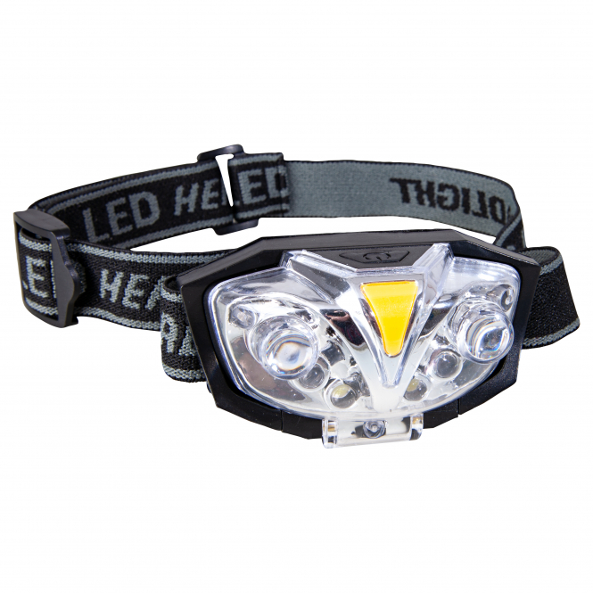Head lamp with 2 pieces each, UV, red and white LED. In addition, the lamp is still tiltable by 90 °. It is operated with 3 x AAA batteries (not included). The lamp has three switching levels. To activate self-luminous bait and hose.