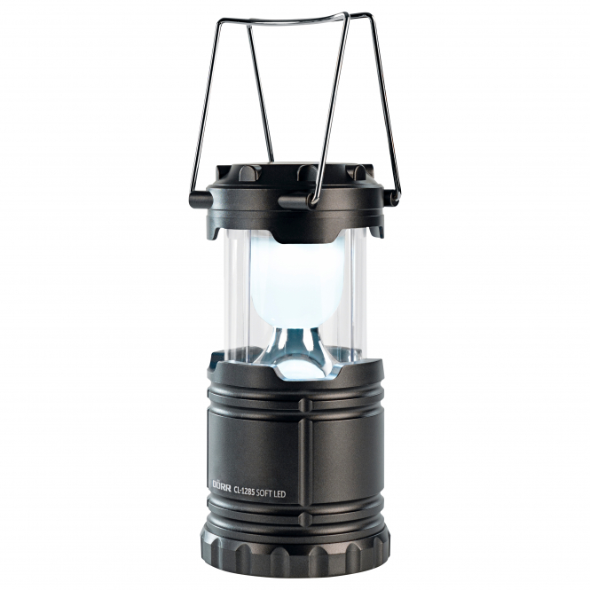 LED camping light with six ultra bright 1W LEDs with 90 lumens. With diffuse attachment for pleasant and non-blinding light. Practical clip for hanging up. Weight: 280 g, Ø 85 mm, height: 124 mm, height when pulled out: 185 mm. Supplied with 3 AA batteries.