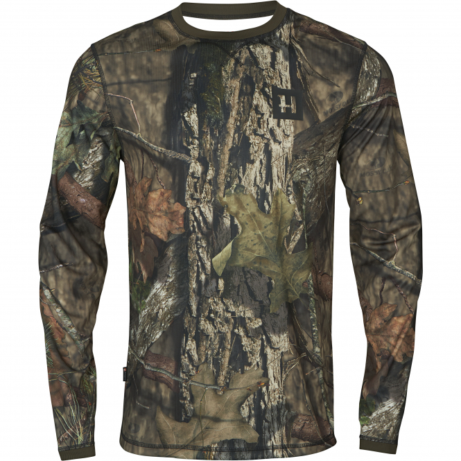 Stretchy shirt with round neck and logo print on the left chest. Colour: MossyOak. Material: 100 % polyester.