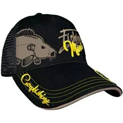 The cap features a rubber logo on the visor, highly visible 3D embroidery and your favourite fish on the front. Colour: black. Material: 55% cotton, 45% polyester.