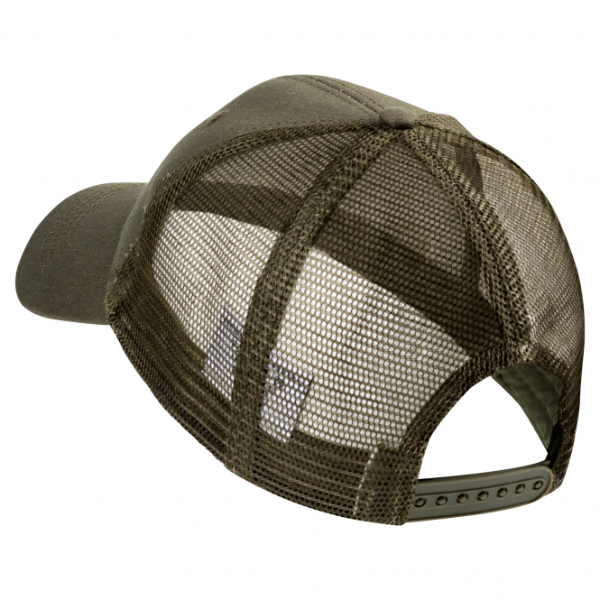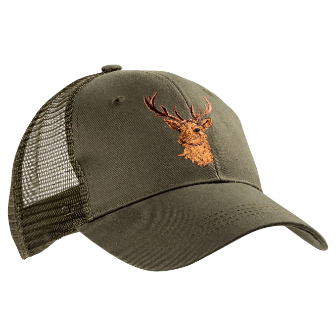 Size adjustable by velcro. With deer motif in the front and mesh insert in the back. Colour: green. Material: 100% cotton, mesh: 100% polyester.