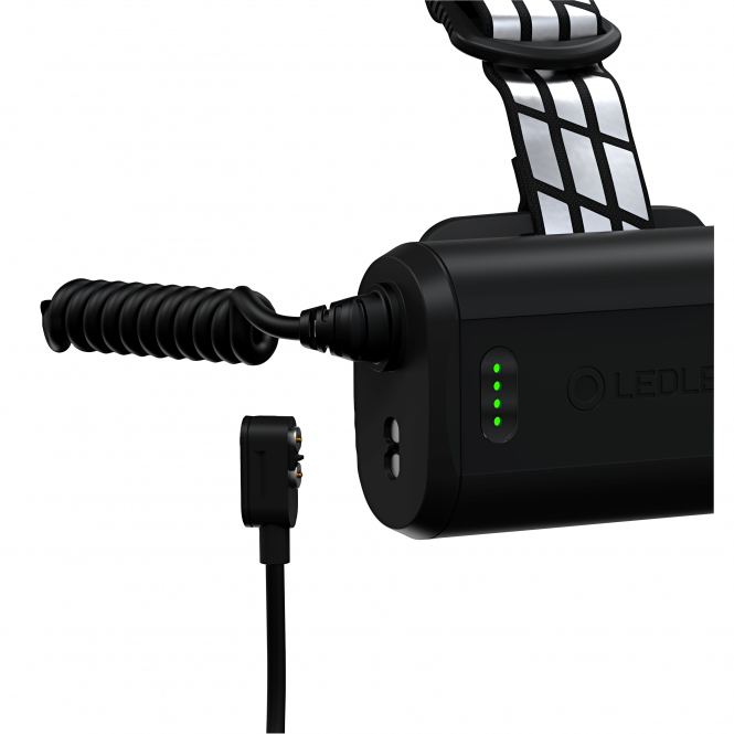 High-end headlamp with up to 4000 lumens. With Fusion Beam for individually adjustable flood and spot light, Bluetooth connection to smartphone for personalized settings. Maximum protection against dust and water (IP68). Weight: 374 g. Incl. battery, mounting clips, Bluetooth remote control, GoPro accessories adapter, helmet mount, Velcro straps, magnetic charging cable, tripod mount, USB power adapter, universal mount, extension cable.