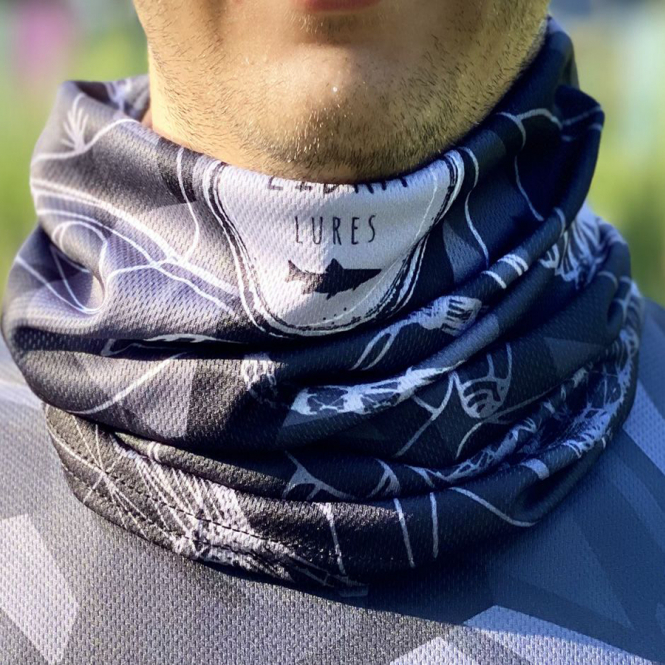 Possible uses e.g. as a scarf, cap or headband. One size fits all. Colour: blue/grey/white. Material: 100% polyester.