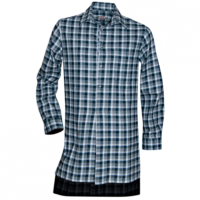 A semi open Long Arm-Shirt with a Embroidery emblem on the Breast Pocket. Colour: vert. Material: 100% cotton.