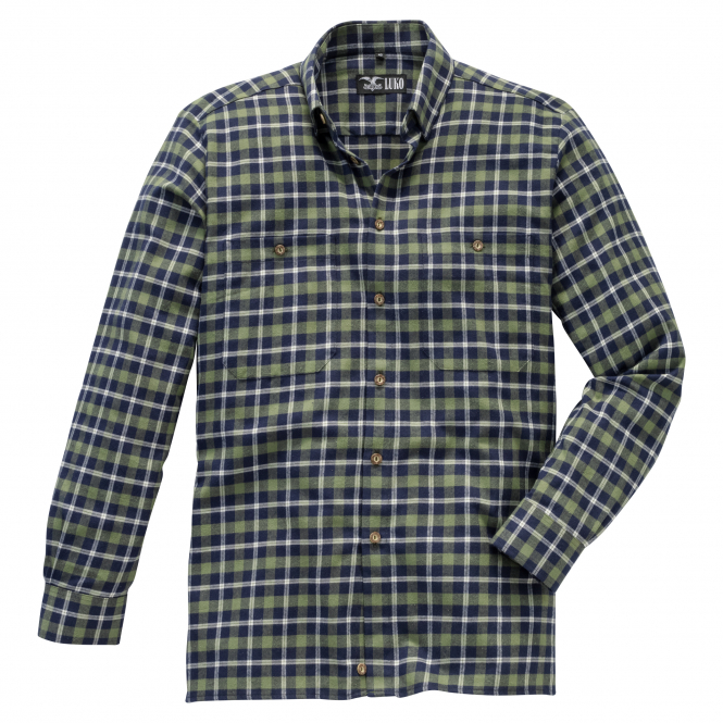 Comfortable shirt in a classic straight cut with high-quality buttons made of imitation stag horn and 2 breast pockets with button. Colour: green/blue check. Material: 100 % cotton.