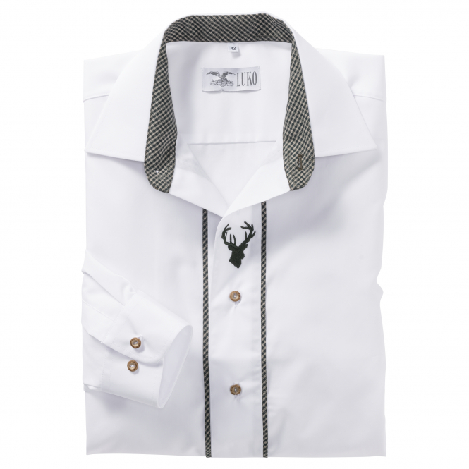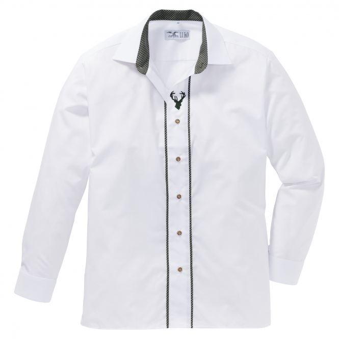 High quality shirt with traditional embroidery. The buttons in horn optic made of deer horn imitation lend the shirt a rustic charm. Colour: white. Material: 100% cotton.