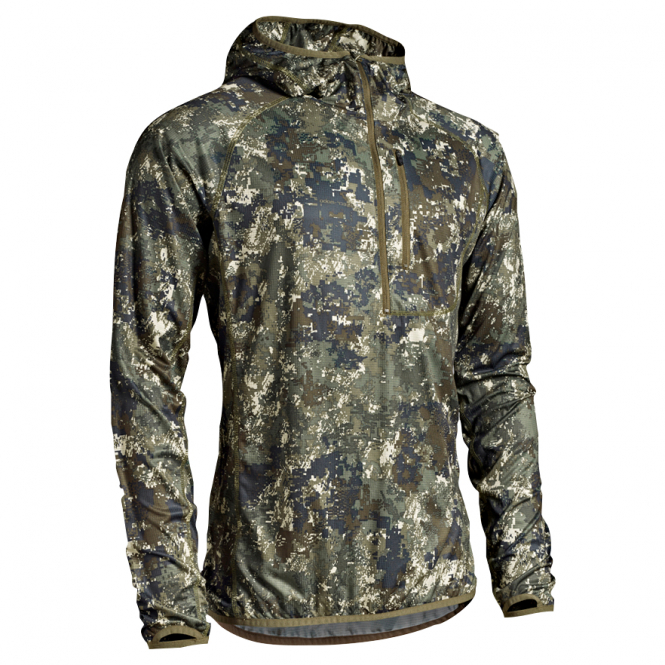 Ultralight camouflage hoodie, ideal for spring and summer. Low noise and breathable. With integrated face mask for optimal camouflage. Color: camo. Material: 100% polyester.