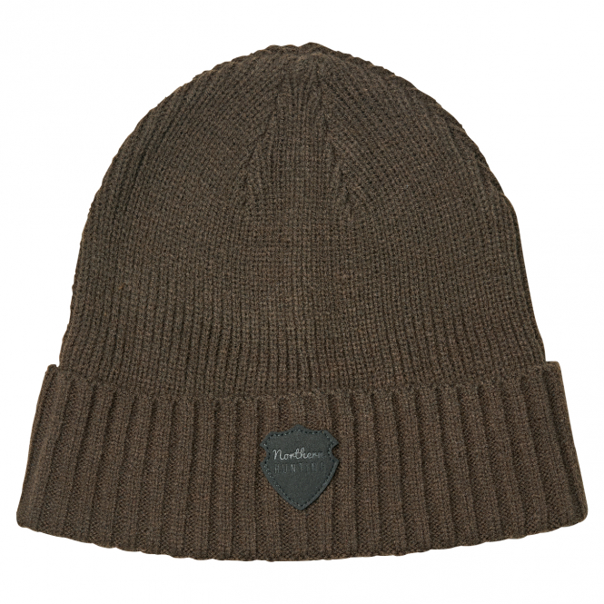 Warming plain knitted cap with wide brim. Color: brown. Material: 70% polyacrylic, 30% wool.