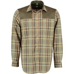 Modern plaid shirt in a straight cut for ideal wearing comfort. The contrasting shoulder parts and the buttons in staghorn optics create a high-quality look. With noble wild boar embroidery on the breast pocket. Colour: khaki/mud. Material: 100% cotton.