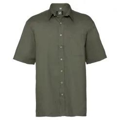 Short sleeve men’s shirt with an easy to iron finish. With chest pocket on the left, with noble embroidery “jumping deer”. Regular fit for the perfect wearing comfort. Colour: olive. Material: 100% cotton.