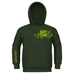 Very high-quality green cotton hoodie, serious quality with logos printed on the front, back and sleeves. Material: 40% nylon, 60% cotton.