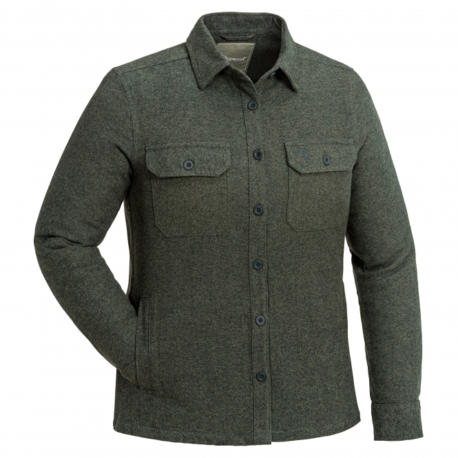Classic shirt blouse in mottled look. With 2 flap pockets on the chest. Color: dark green melange. Material: 100% cotton.