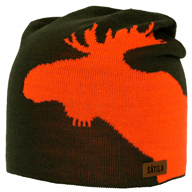 With orange deer motif. Colour: green. Material: 50% wool, 50% polyacryle.
