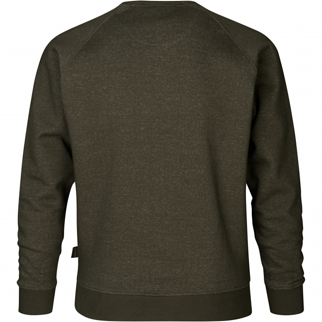 A sweatshirt with ribbed cuffs and a front print on the chest. Colour: pine green melange. Material: 52% cotton, 48% polyester.