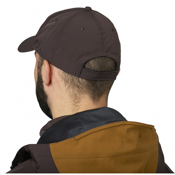 Classic cap made of water repellent fabric with DWR treatment and ventilation holes. Colour: dark brown. Material: 92% polyamide, 8% elastane.