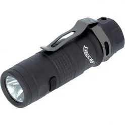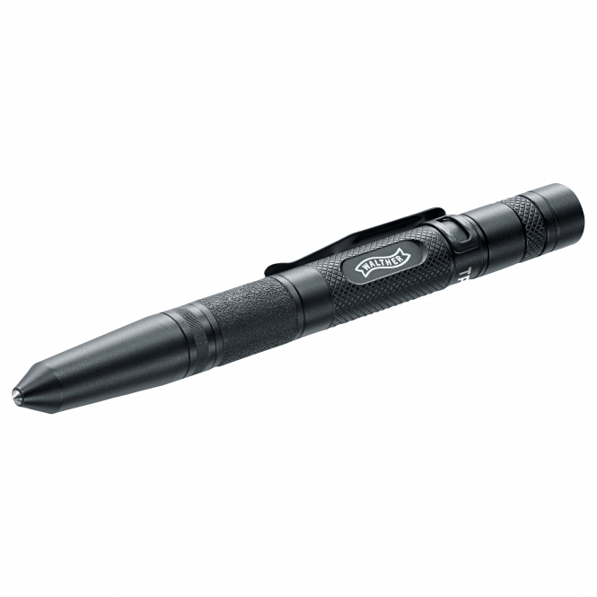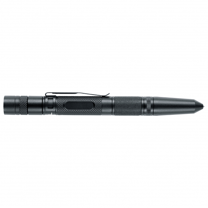 A sturdy aluminum ballpoint pen in tactical Kubotan design. LED light with cree chip. With rubberized grip surface, glass breaker and removable clip. Incl. 1 x AAA battery. Lumen: 70. chip: Cree XP-E2. Brightness level: 100%. Length: 15.1 cm. Weight: 53 g.