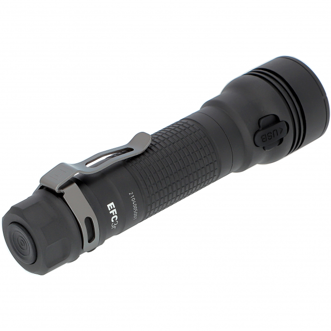 Rechargeable and compact. With 5 light levels (10/50/200/1,000/3,000 lumens) plus strobe and beacon (emergency flash), on/off and momentary light via rear switch, brightness change/special modes via side switch, brightness level memory (lamp starts at last used level) and integrated warning at 25% remaining capacity. Waterproof (IPX8). Light range max.: 180 m. Max. burn time: 110 h. Chip: Luminus SST40. Length: 13.7 cm. Weight: 170 g. Incl. battery 21700, charging cable, holster, wrist strap and spare seal.